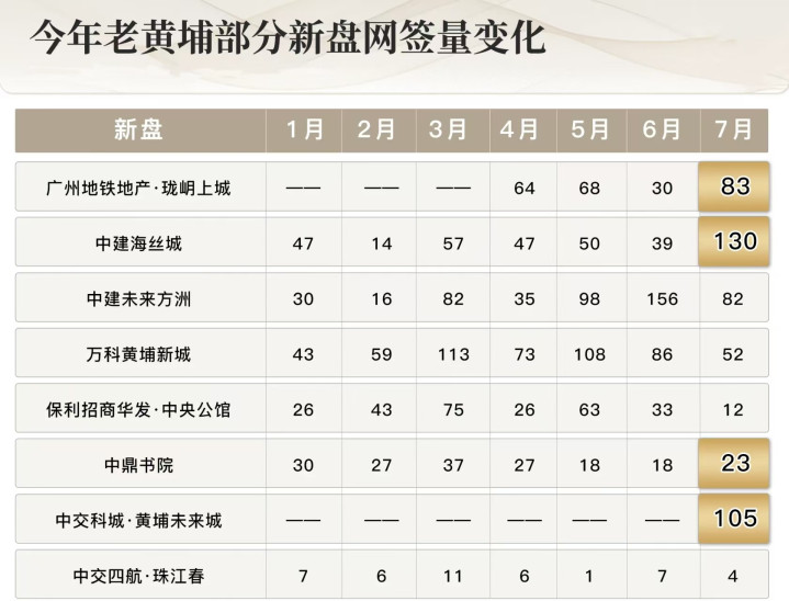 刚过去的7月份,老黄埔各大主力盘,基本卖得不错。